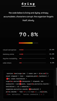 parts of this website now has a 24/7 heartbeat and code that slowly dies
